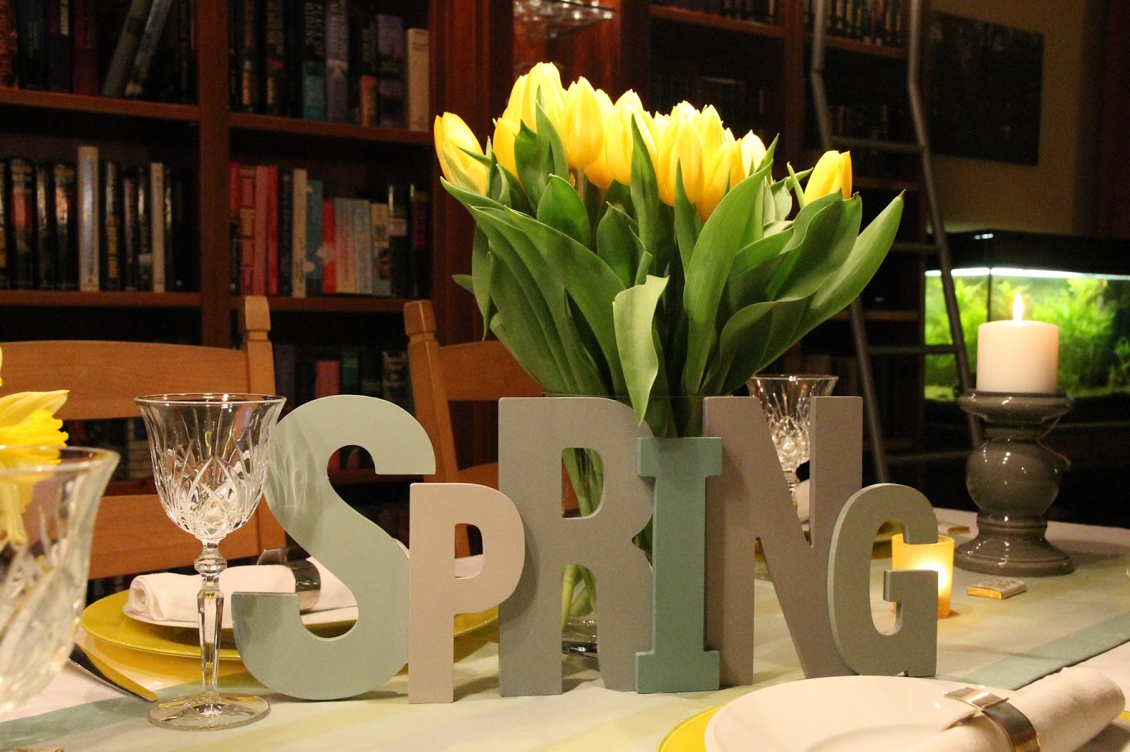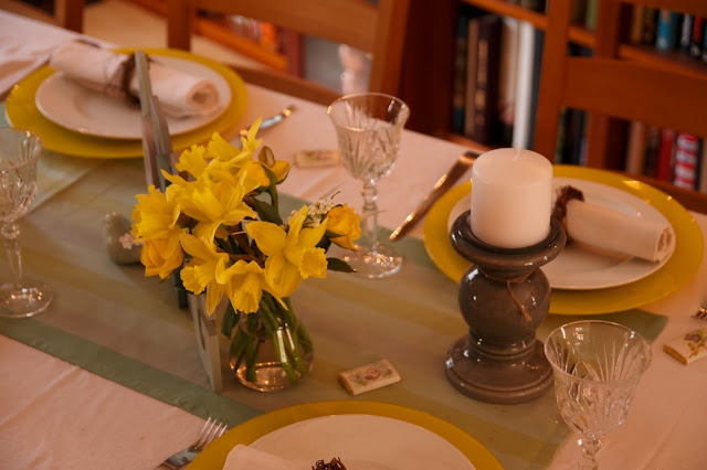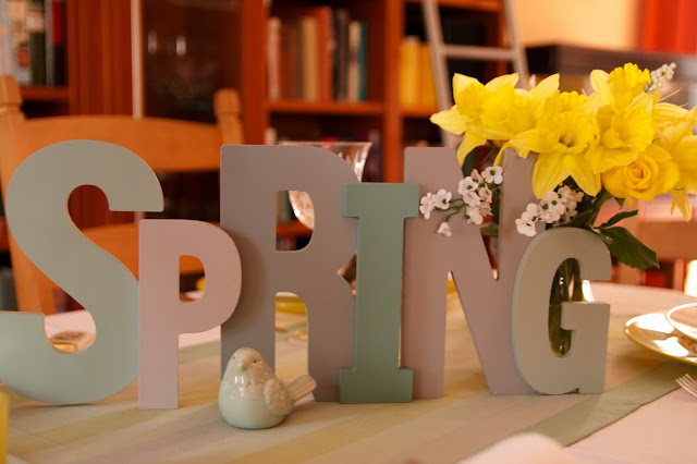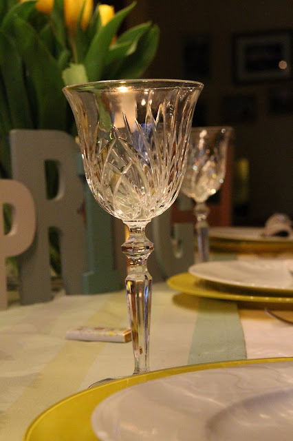 Unfortunately....mother nature does not share my views as she is letting us wait and is sharing with us cold and rain instead of blue skies and sunshine. So, to make that wait not seem so long, I have brought spring into our indoor living space, by creating a spring tablescape.