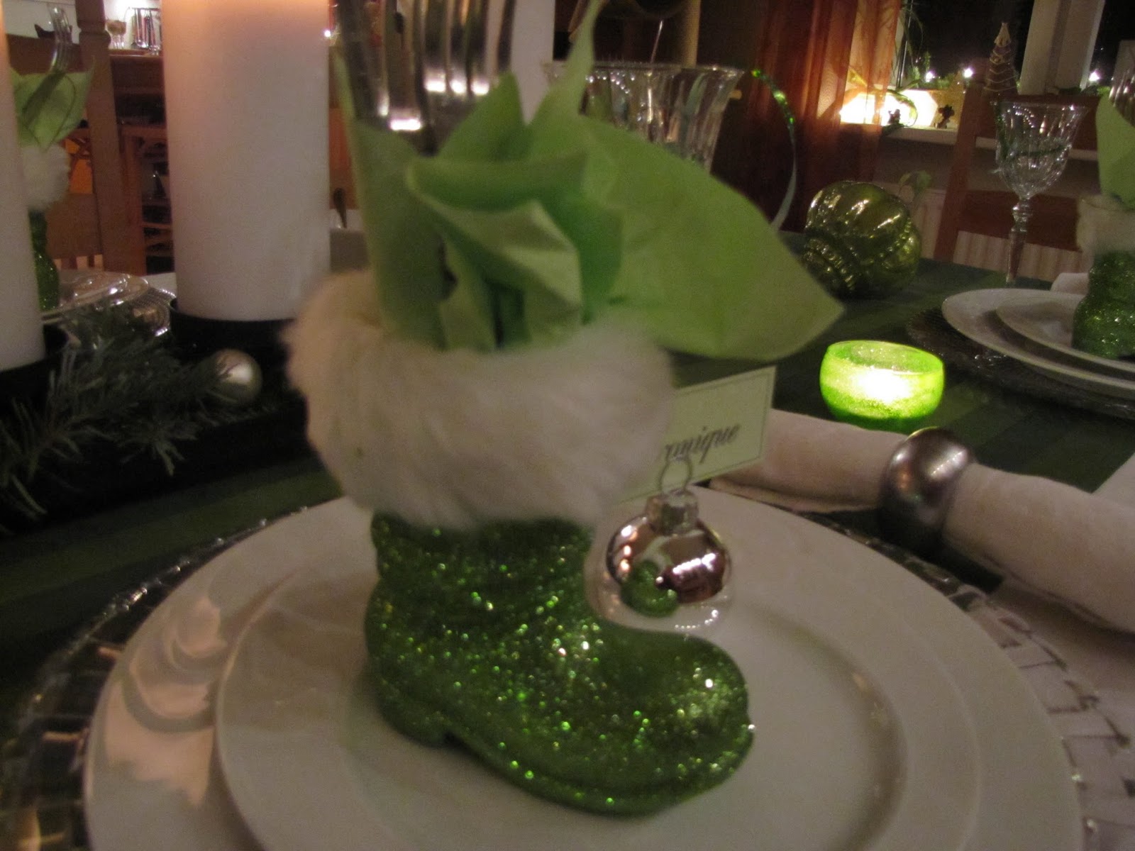 2. Love the green, it really sets the table off with a festive tone. Your green Santa boots are really cute. Thanks for sharing.